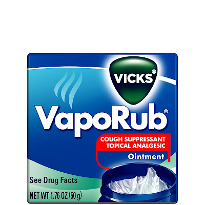 Hahaha! Cute. I use the Watkins version of vicks. Same stuff, fewer chemicals. It seems to work too. Hope you are all feeling better soon!